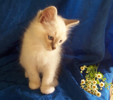Ch. Bel Ami of White Miracle Cats (Bel Ami = Schöner Freund) Farbe: lilac-tabby-point Bel Ami lebt inzwischen mit Amiro in Seligenstadt und die Beiden haben viel Spaß miteinander. |