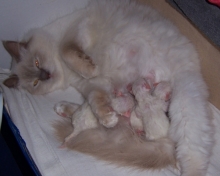 Cosima of White Miracle Cats Farbe: seal - point ist zu einem Birmakaterchen nach Deggendorf gegangen und durfte inzwischen auch schon Mama werden.